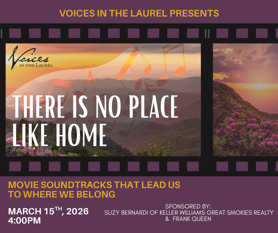 For its 30th Anniversary winter pop concert, Voices in the Laurel children, youth and adult choirs will present, There’s No Place Like Home. Enjoy an afternoon of beloved film music celebrating the theme of home — longing for home, cherishing home, and discovering home in unexpected places. The concert will take place at 4 PM at First Baptist Church of Waynesville.
